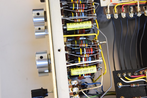 内部です。 カップリングコンデンサーやカソードバイパスコンは交換していないので修理前と余り変わっていません。