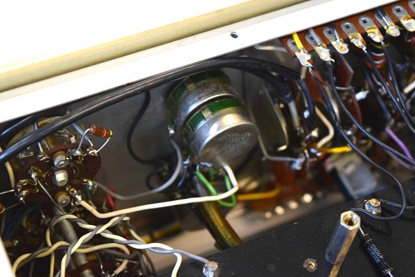こちらはバランスボリュームです。以前どこかでレストアされたときに交換されています。緑色のボデイの、仕様の違うクラロスタットです。