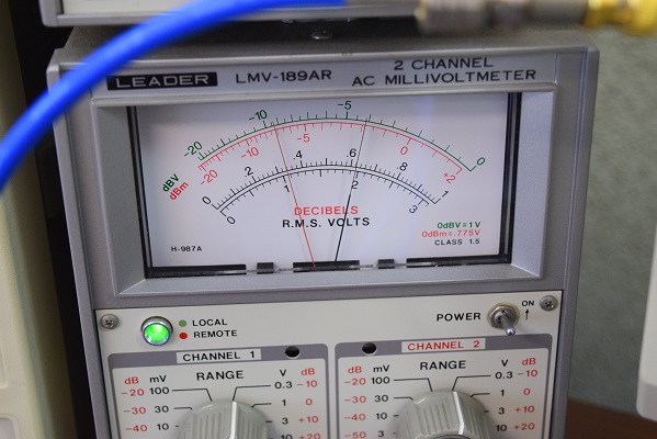 左右の出力電圧です。赤針は左チャンネルで黒針は右チャンネルです。明らかに左の出力が落ちています。
