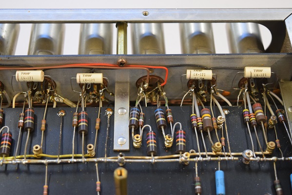 ラインアンプ右のプレート抵抗です。抵抗値が抜けています。