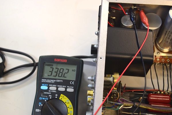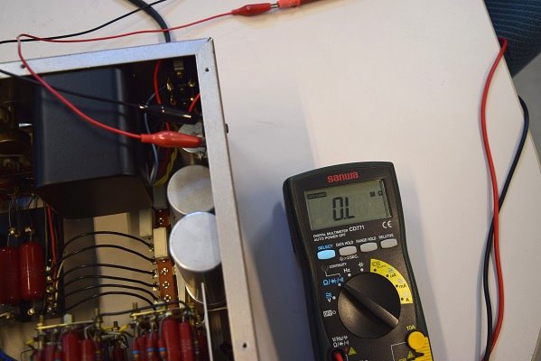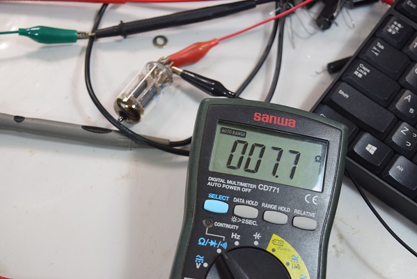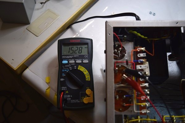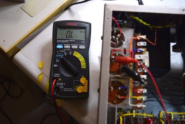 ヒーター電圧も異常に高かったので各真空管のヒーターをチェックします。どれも正常な抵抗値なので全ての真空管は幸いにも無事です。