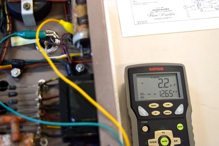 この他、ACバランスや各真空管のプレート電圧やカソード電圧等の各値をチェックしています。