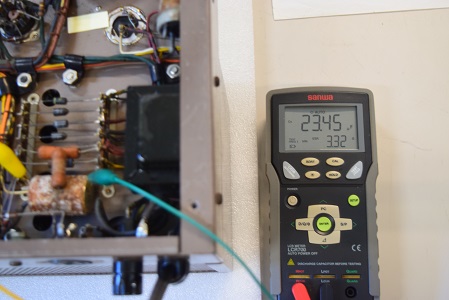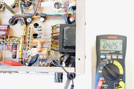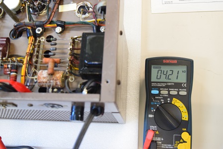 まずは電源トランスの巻き替えを行い、その後ブロックコンデンサーやセレンの交換後各電圧が正常になってから各回路のチェックを行います。