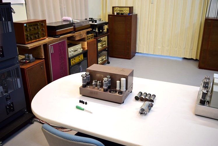 ★因みに、修理後のエージング中に元から付いていた出力管に交換してバイアス調整をしました。