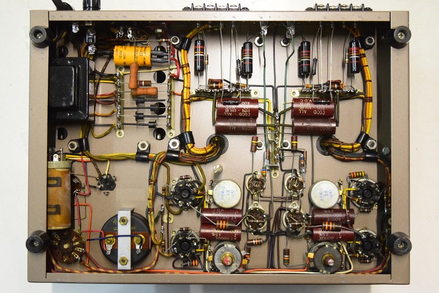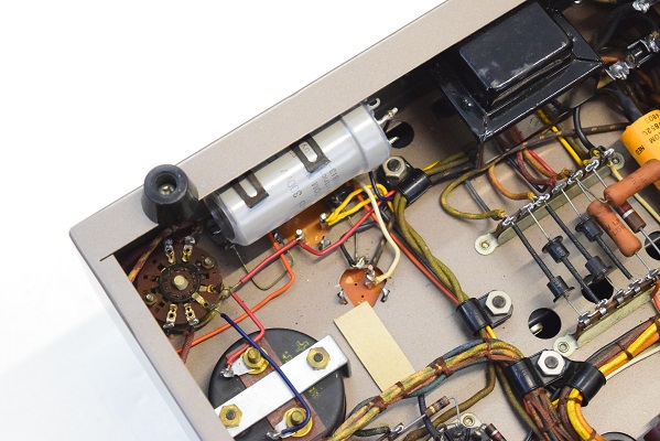 内部です。シャーシーは極めて奇麗ですが各部品は年代相応の状態です。バイアスの電解ブロックコンデンサーは以前どこかでレストアされた時に純正SPRAGUE ATOMに交換されています。低圧セレンもこの時交換されたようです。