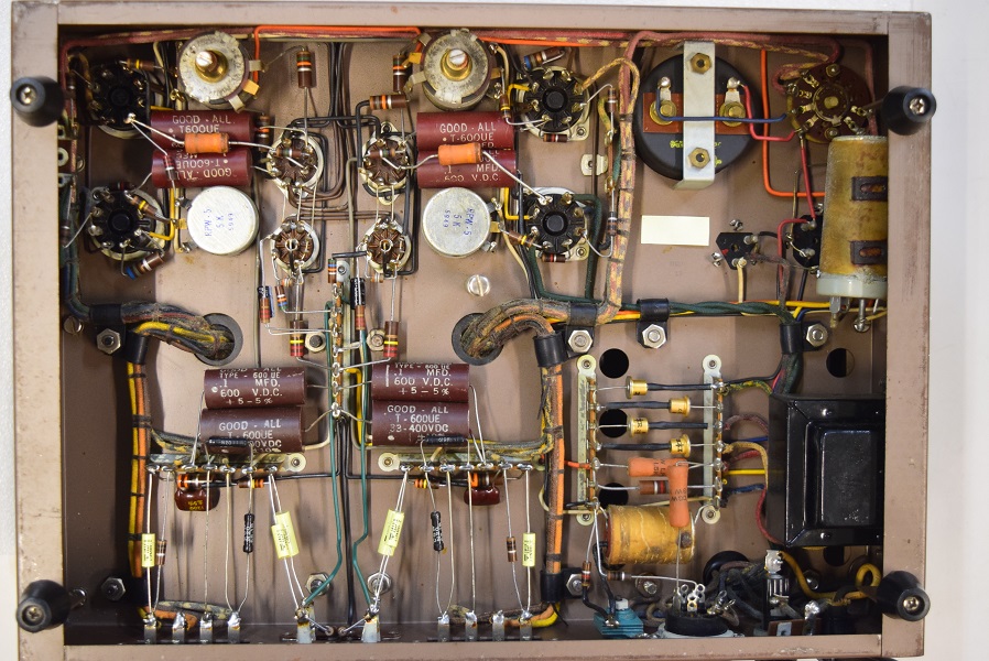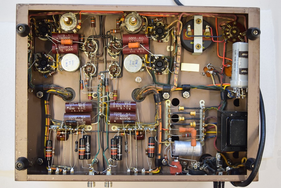内部です。入り口側バンブルビーは不良だったのかVishayのコンデンサーに交換され、電源の高圧整流ダイオードも交換されていますが、他は完全にオリジナル状態です。よくこれで持っているなぁ、という印象です。