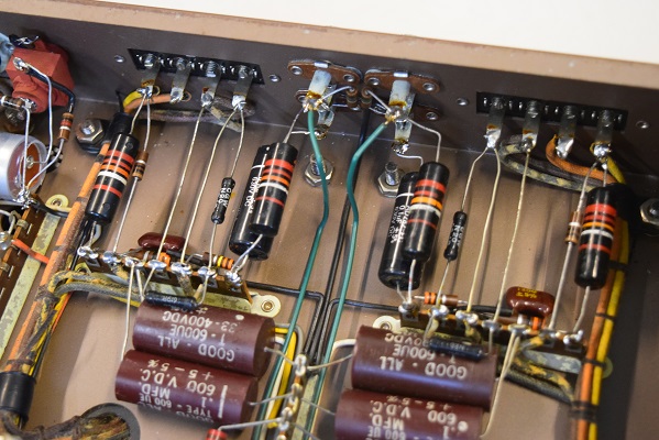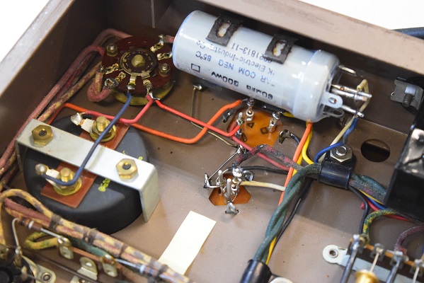 こちらは初段管のカソードバイパスコンです。前のレストアで交換してあります。状態も良いようです。