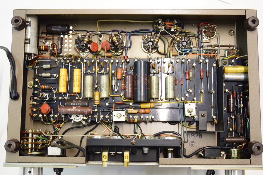 一見特に問題の個所は見当たりませんが、経年劣化で出力管のカソード抵抗の値にかなりバラつきがあります。これもバイアスメーターの振れに影響しています。