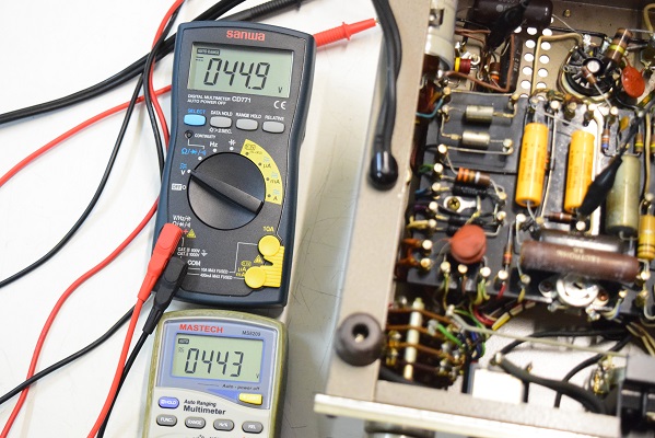 左チャンネルが今回修理依頼のMarantz9オリジナル、右チャンネルは当工房のMarantz9k(改)です。