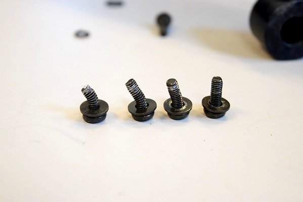足の取付けボルトです。4本中3本が曲がっています。この内1本は引きちぎられて短くなっています。