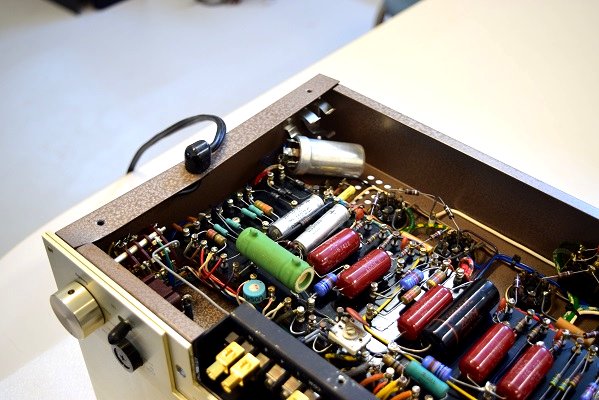 ★この他、まだ未確認ですが出力管がそのまま取り付けた状態で送られています。通常出力管のソケットはブラブラなので運送途中のトランポリン状態が長時間続くと真空管内部の線の溶接が外れてショートすることがあります。