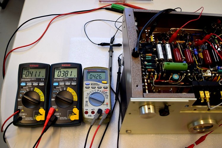 Marantzの真空管パワーアンプは、どれも出力管は固定バイアスなので時折バイアス調整が必要です。特にMarantz9(系)はパラレルプッシュプルなので各出力管のバランスが大事です。