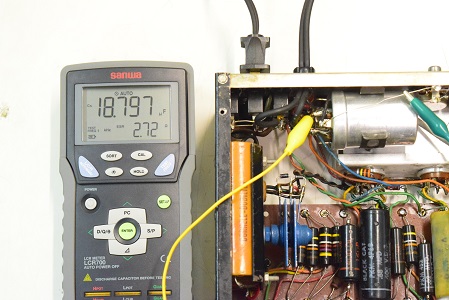 低圧倍電圧の片側です。かなり容量が抜けてESRも極めて高い状態です。不良です。