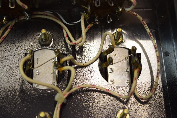 ウエスタンのコンデンサーの配線です。結構こういうところに拘るマニアの方がいますが、普通の10uF/25V程度の安い電解コンデンサーで充分です。この程度で音は変りません。