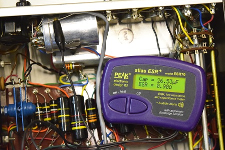 初期型の電解ブロックコンデンサーです。一部ESRはすこし高いもののまだ使えそうです。