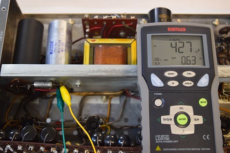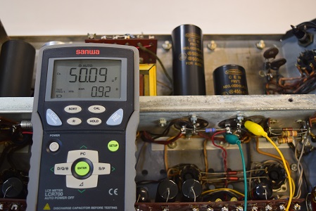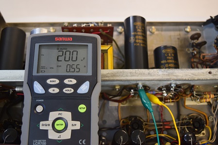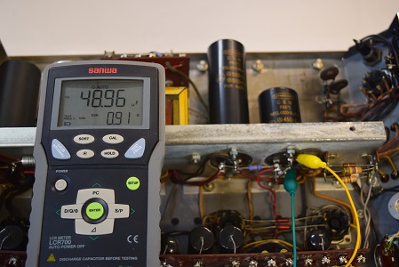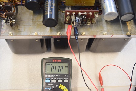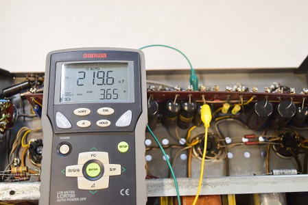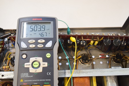 このまま電源を入れると危険なので、このセレンと電解コンデンサーを交換した後で最初の電圧測定及び音出しの検査を行います。