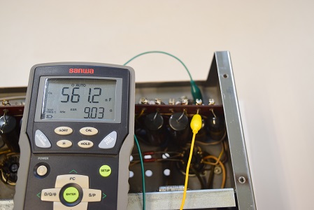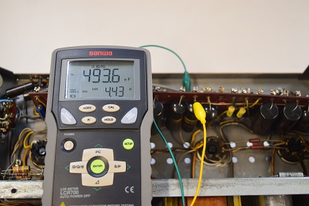 バイアスC電源の電解コンデンサーです。容量が抜けてESRも非常に高い値です。交換されて余り時間が経っていないはずですが不良です。やはりバイアスセレンにダイオードをパラに接続された後遺症です。