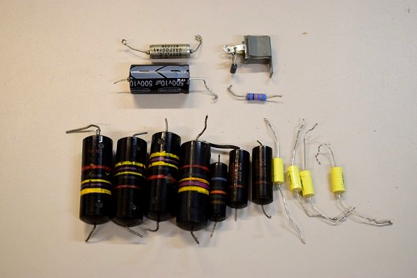 カップリングコンデンサーは一部のバンブルビーだけ小さな代品に交換されています。初段管のカソードバイパスコンもきちんと交換されています。