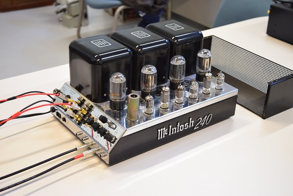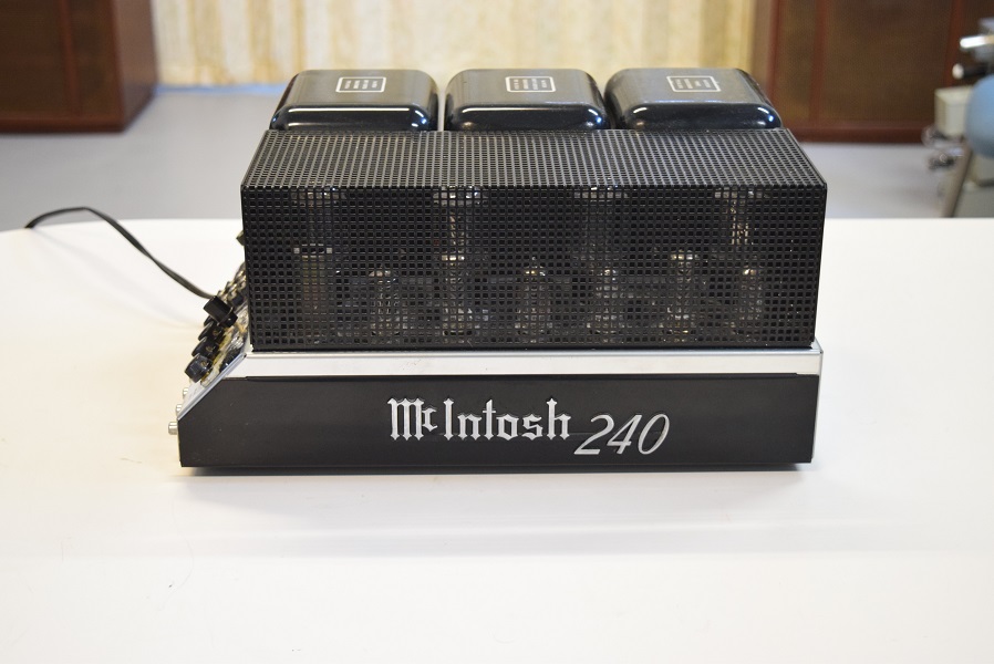 綺麗なMcIntosh MC240です。最近右チャンネルから電源を入れるとブーンというノイズが出るようになったので修理レストアを依頼されました。