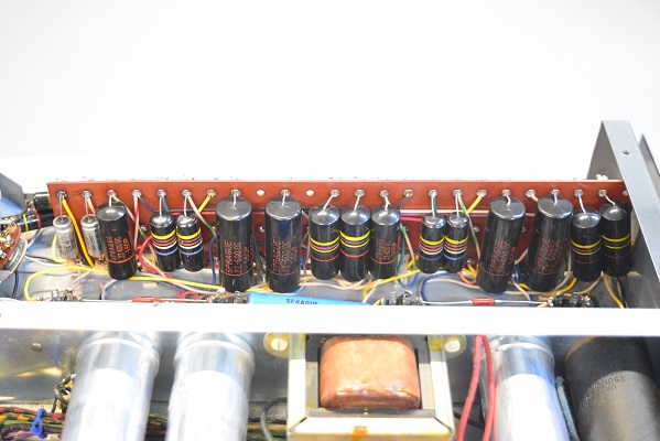 各回路のコンデンサーもオリジナルのままです。右チャンネルからノイズが出るのでこの中のどれかのバンブルビーがパンクしています。
