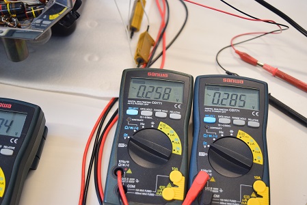 電源を入れて数分経っても左右とも少し電圧が出ています。これもノイズです。