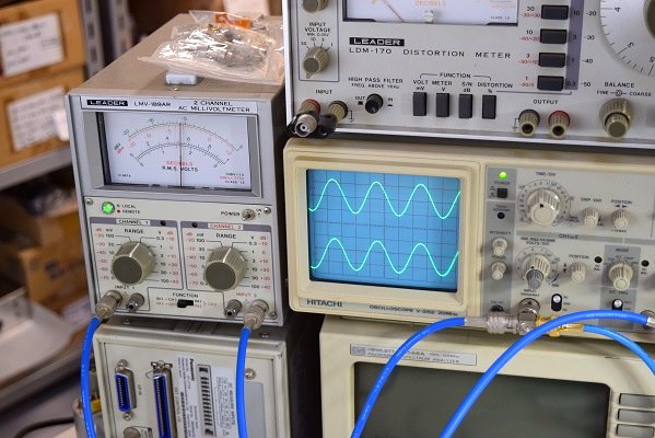 出力波形と周波数特性の検査です。綺麗な波形が出ています。