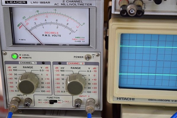 残留ノイズの測定です。ミリバルのメーター読みで左右とも0.002V以下を示し良好です。