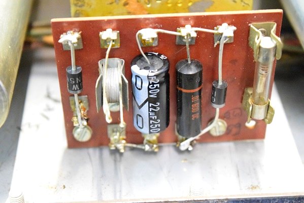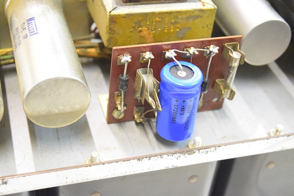 高圧の倍電圧電解コンデンサーはオリジナルが付いています。前回のレストアでは代品が無かったのか電解コンデンサーをパラに繋いであります。