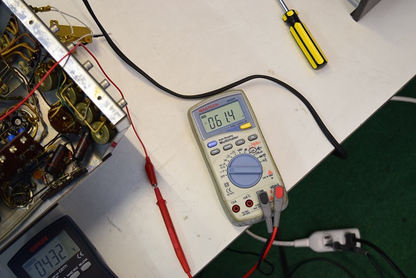 電源トランスの漏れ電圧です。AC61.4Vとかなり漏れています。