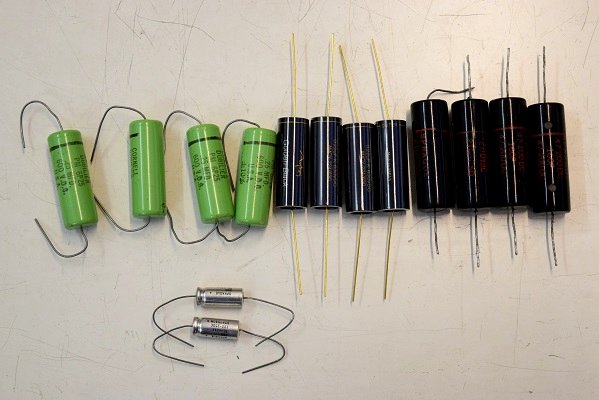 左のグリーンはマッキン純正コーネルデュブラーの0.22/600Vで中央の金色リードはGoldenBlackの0.22/630Vです。このどちらかを使います。ここは600V耐圧のものが必要なのでこの2種類からの選択になります。