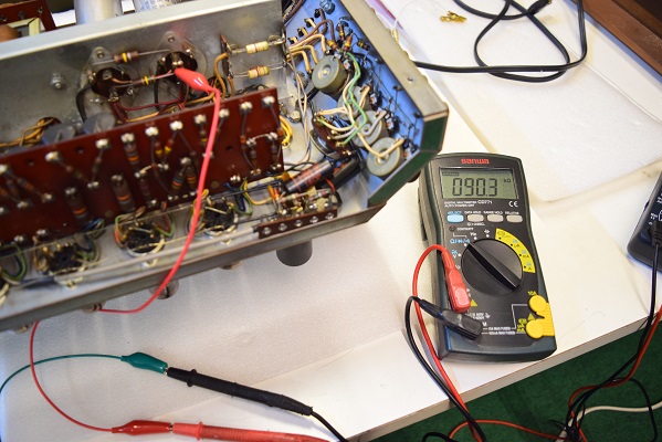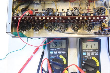 カップリングコンデンサーをチェックしましたが特に問題は無く、出力管が入って来たので交換しました。