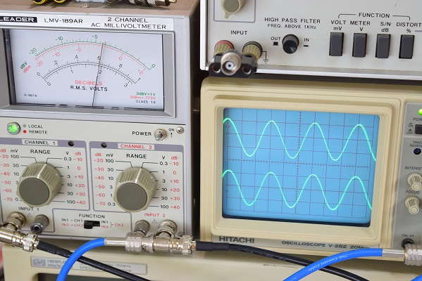 出力波形です。綺麗な波形が出ています。周波数特性等も良好です。