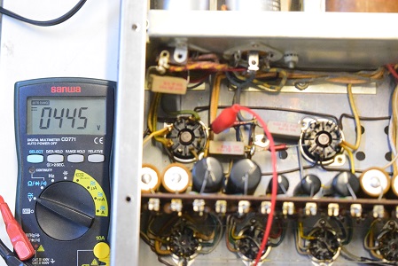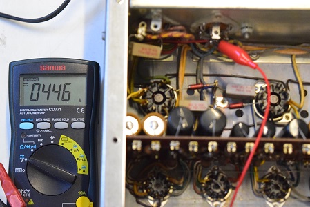 ← 左の出力管2本です。それぞれ445V,444Vを示し良好です。