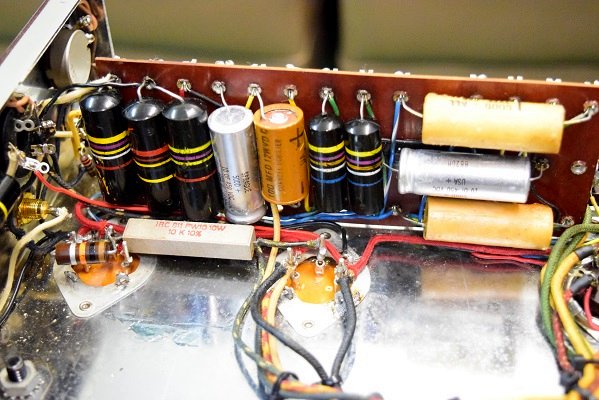 電解ブロックコンデンサーは当工房でオリジナル仕様の新品に交換しました。