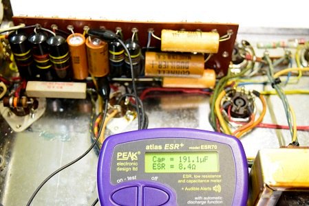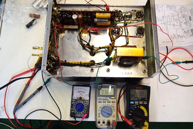 内部は殆どオリジナル状態です。ただ、前回他でのレストアで電解ブロックコンデンサーを2本とも交換されています。