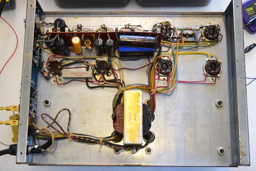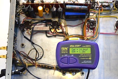 最初の検査では殆どのコンデンサー類を交換する予定でしたが、レストア中の部品を外しての再検査でまだ充分使えるものもたくさん有ったので、オリジナリティ尊重のため電源回路以外の交換は最小限に留めました。
