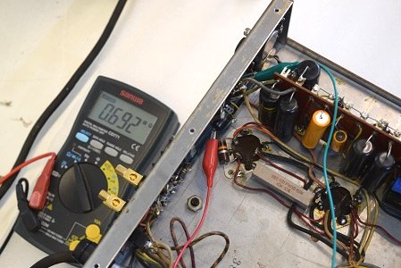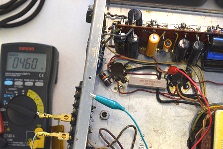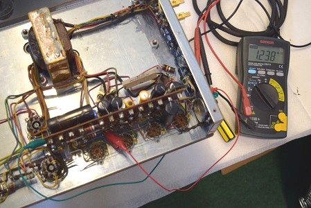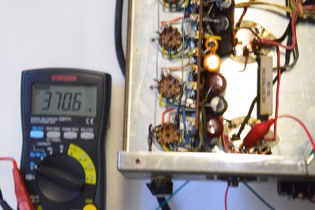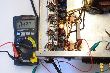 レストア前はこの電圧が高圧B1よりも高かったのですが、やはり電解ブロックコンデンサーを交換すると正規の電圧になりました。