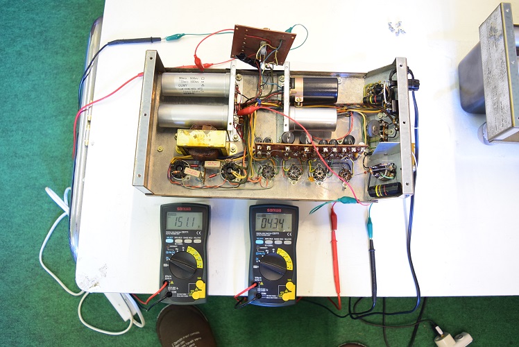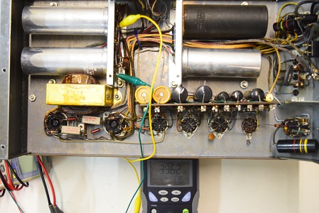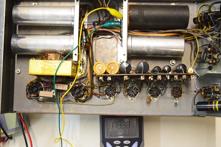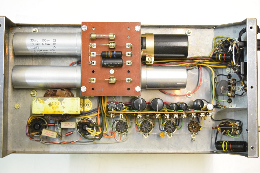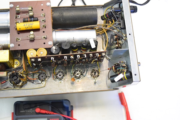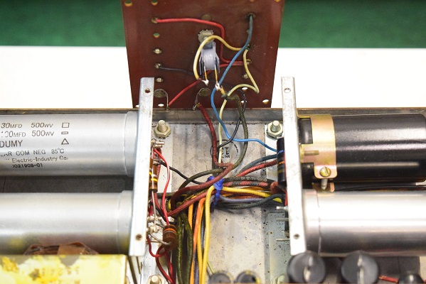 電解ブロックコンデンサーを4本ともオリジナル仕様の新品に交換し、他の小さな電解コンデンサーも全て交換しました。バンブルビーの殆どは良品でしたが初段管の0.22uF/400のみブラックビューティーに交換しました。