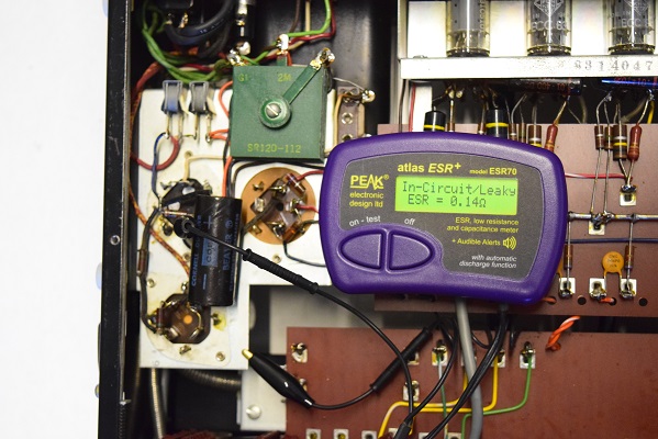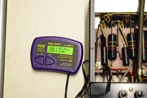 フォノイコのカソードバイパスコンは左右とも値がかなり膨れています。 ESRもかなり高めです。