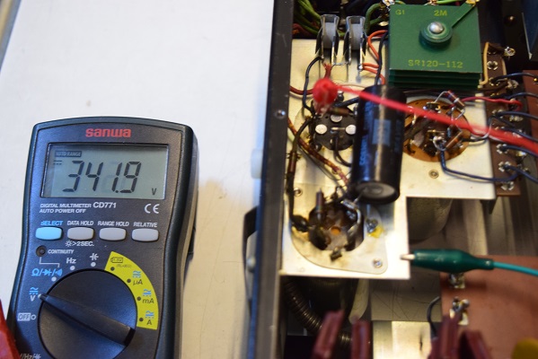 まず、高圧セレン直後の電圧です。341V出ているので高圧セレンは大丈夫です。