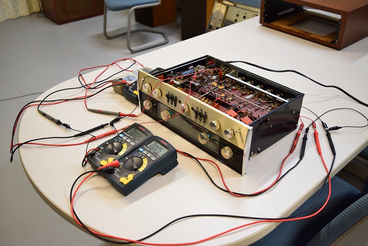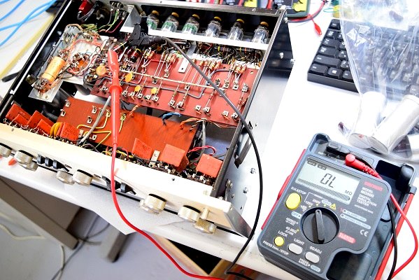 マッキンの電源回路は極めて特殊なので他のレストア屋さんは必ず改造して何とか電圧を確保します。しかし、きちんと正規の正常な回路に戻さないとこの影響は低音のぼんやり感に反映され、これがマッキン特有の音となって皆さん聴いています。