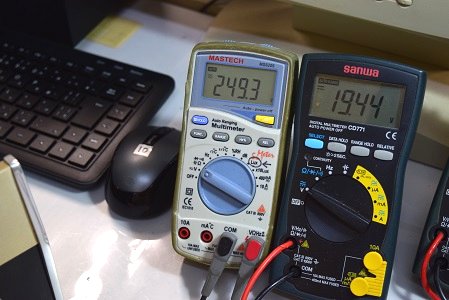 こちらの白テスターは高圧B3です。こちらも249.3Vで極めて良い値です。