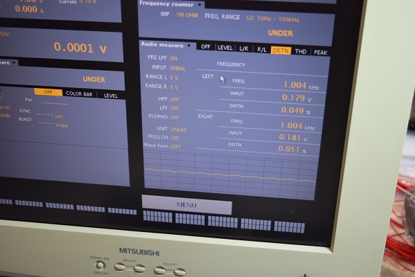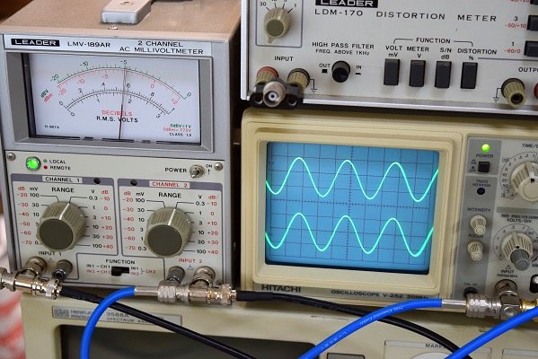 左右の出力波形です。綺麗な波形が出ています。周波数特性や歪率も良好です。