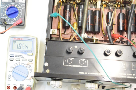 こちらはC22の初期型なのでカップリングコンデンサーは殆どバンブルビーの筈ですが、以前どこかでレストアの際に全てブラックビューティーに交換されています。しかも耐圧の違う大きいものに交換されています。