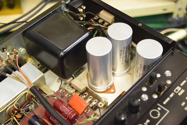 電源回路は電解ブロックコンデンサーを3本ともオリジナル仕様の新品に交換しました。ラインアンプのブラックビューティーは音の良い代品の新品に交換しました。