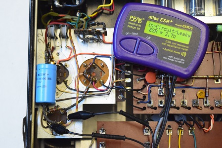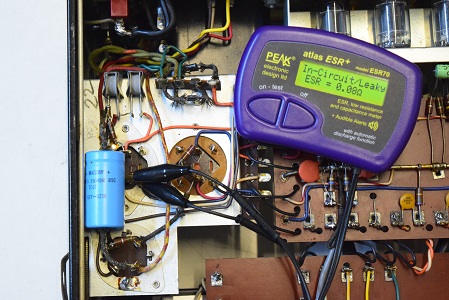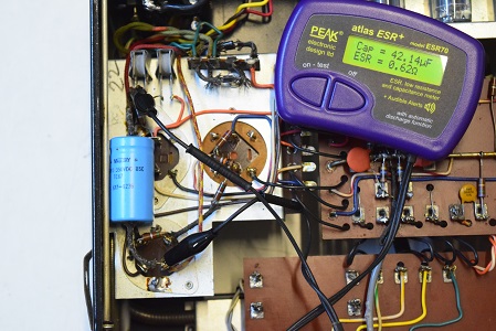 高圧の1段目ですが、画像のように静電容量はあるもののESRが異常に高くコンデンサーの機能を成していません。