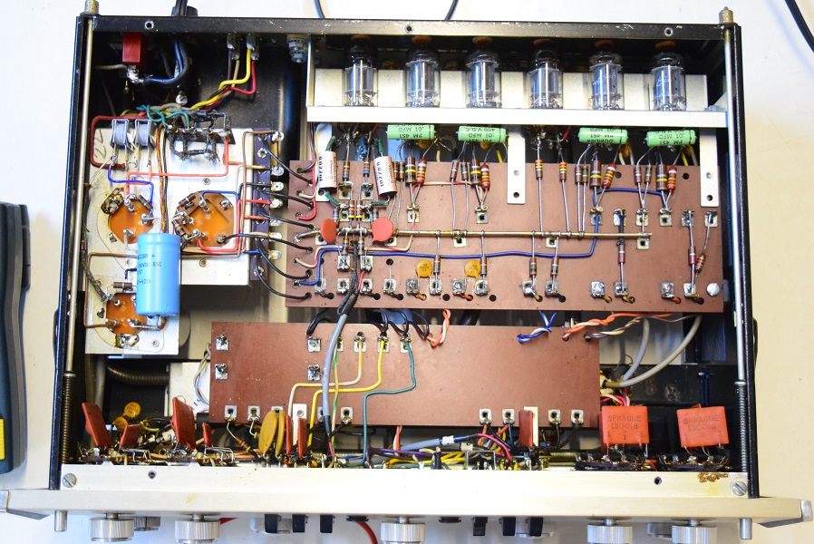 内部上面ですが、全てのカップリングコンデンサー及びカソードバイパスコンが交換されています。