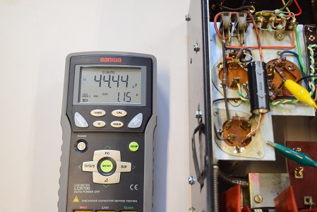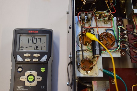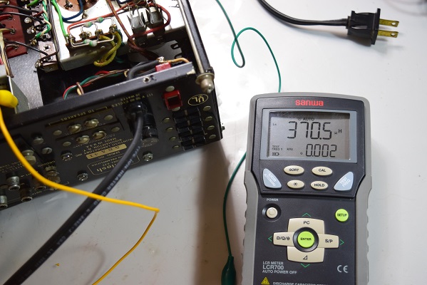 電源トランス1次側のインダクタンスと巻き線抵抗です。少し低いようです。1次側が低ければ2次側電圧は高く出ます。