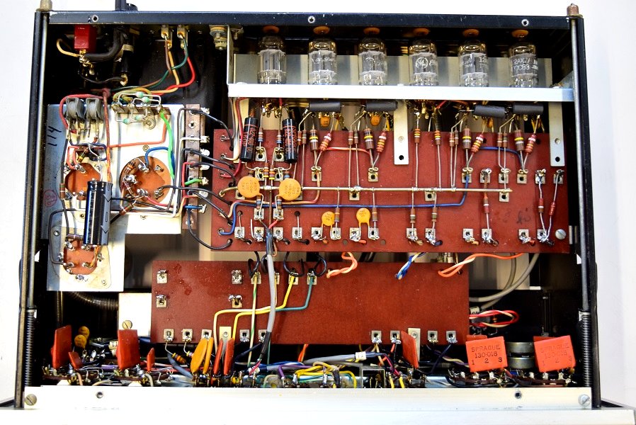 内部上面です。これまでのブラックビューティーを全て音の良いUSA仕様のコンデンサーに交換しました。