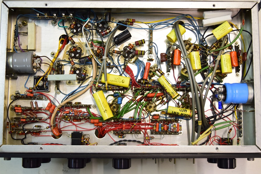 真空管が8本もあります。全て12AX7です。恐らくトーン回路にミッドレンジを設けているのでその分増幅回路が多くなったのでしょう。